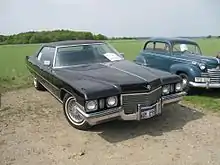 ![]() 1972 Cadillac Coupe Deville, округлые боковины, длинный молдинг, рассекающий задний светоотражатель и хромированная окантовка арок колёс и порогов | |||||||||||||||||||||||||||||||||||||||||||||||||||