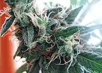 ![]() Соцветия «Белой Вдовы», покрытые трихомами | ||