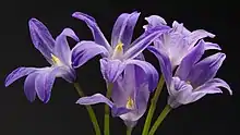 - 'Violetta'. Оригинатор: Huijg Veredeling, регистратор: Huijg, 2004. Награды: Getuigschrift Proeftuin 2004. Высота растений около 5 см. Цветки светло-голубые, жилки лепестков белые. Пыльца жёлтая. В соцветии 5—7 цветков[9].