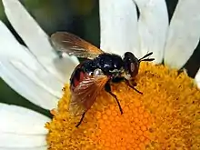 Мухи встречаются на цветках растений и в траве. Паразитируют в клопах семейства настоящих щитников (Antheminia, Carpocoris, Holcostethus, Phimodera и Palomena)[3][2]. Самки активно разыскивают жертву в течение светлого времени суток. В наблюдениях за развитием на клопе Palomena prasina показали, что яйца тахины располагаются, обычно на спине клопа, чаще всего по краям на II—V тергитов брюшка, на границе переднеспинки и щитка, а также на крыловых чехлах. Развитие в теле клопа продолжается в течение 30 суток. Вылет мух происходит после завершения личиночного развития хозяина, когда он достигает стадии имаго[4].
