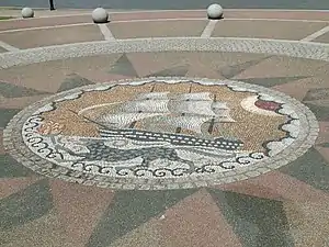 ![]() Мозаика в аббатстве Ингресс: стилизованный HMS Worcester |
