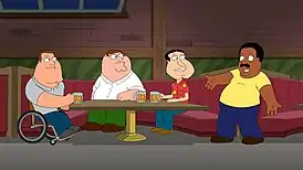 Уже в баре Питер заявляет, что шоу «Гриффины» меньше смотреть не стали после ухода Кливленда. Тишина: Кливленду нечего сказать в ответ.