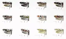 ![]() Иллюстрация из 3-томного издания «Фауна Гавайев» (лат. Fauna Hawaiiensis): 1. Hyposmocoma subscolopax, 2. Hyposmocoma tetraonella, 3. Hyposmocoma somatodes, 4. Hyposmocoma belophora, 5. Hyposmocoma turdella, 6. Hyposmocoma subcitrella, 7. Hyposmocoma inflexa, 8. Hyposmocoma brevistrigata, 9. Hyposmocoma discolor, 10. Hyposmocoma fuscotogata, 11. Hyposmocoma radiatella и 12. Hyposmocoma barbata | ||||||||||||||||