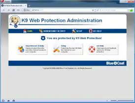 K9 Web Protection — компьютерная программа, предназначенная для осуществления родительского контроля и ограничения пользователей от нежелательного контента. Работает под операционными системами Windows, Mac OS. Для Android и устройств фирмы Apple (iPhone, iPod, iPad) существует в виде мобильного браузера[1]. Разработка компании Blue Coat Systems. Программа распространяется по лицензии Freeware для домашних пользователей, и по лицензии Shareware для предприятий.