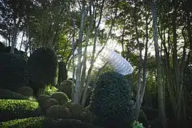 Выполненная из пластиковой плёнки специально для Les Jardins d’Étretat, инсталляция петербургской художницы Алены Коган превращает вершину утеса в морское дно, мгновенно меняя наш угол зрения и масштаб окружающей реальности[9].
