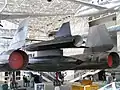 Вид сзади. Lockheed M-21, стоящий в музее авиации Сиэтла штат Вашингтон, являющийся модификацией A-12 являющегося предшественником SR-71 с прикреплёным дроном MD-21B