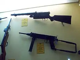 При его разработке были использованы технологии британского пистолета-пулемёта «Уолл» и советского ППШ.