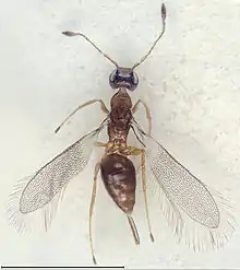 Мимариды[1] (лат. Mymaridae) — семейство паразитических наездников надсемейства Chalcidoidea подотряда стебельчатобрюхие отряда перепончатокрылые насекомые. Размеры мелкие (от 0,14 до 4 мм). К этому семейству относятся самые маленькие насекомые в мире. Это виды Dicopomorpha echmepterygis с длиной примерно 0,139 мм (самое маленькое насекомое в мире), Kikiki huna длиной 0,2 мм и Alpatus magnimius (0,21 мм). Крылья с сильно редуцированным жилкованием. Скутеллюм поделен поперечной перемычкой на переднюю и заднюю части (у 98 % видов).