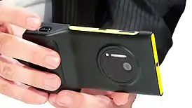 ![]() Nokia Lumia 1020 в специальном чехле Camera Grip | |