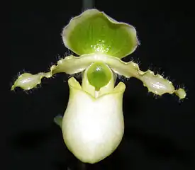 - Paphiopedilum chamberlainianum var. flavum Fowlie 1973