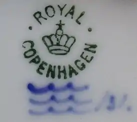 Royal Copenhagen — Датская Королевская фарфоровая мануфактура. Основана 1 мая 1775 года под патронажем королевы Юлианы Марии, шестая по счету придворная фарфоровая мануфактура в Европе. (1710 — Мейсен, 1719 — Вена, 1738 — Севр, 1744 — Санкт-Петербург, 1751 — Берлин). После реструктуризации (2002) - фабрика переместилась из центра Копенгагена в пригородный Глоструп.