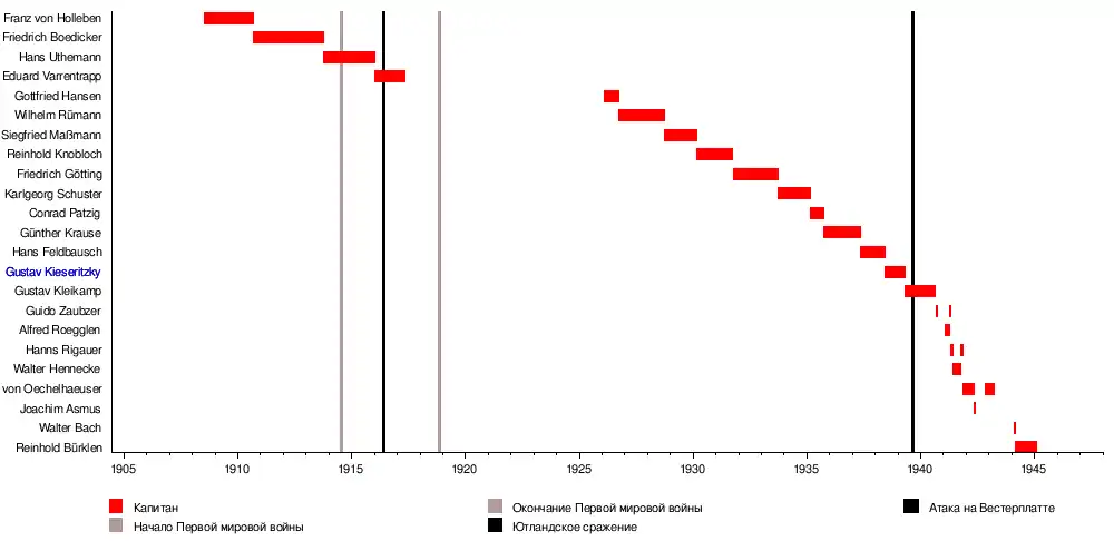 - Германские моряки называли их так, поскольку предполагалось, что приблизительно столько проживут эти корабли при стычке с дредноутом. См. также: Tarrant, 2001, p. 62