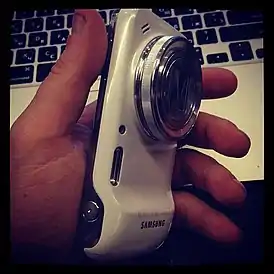 Samsung Galaxy S4 Zoom (SM-C101) — компактная камера выпущенная фирмой Samsung на базе операционной системы Android 4.2 с надстройкой TouchWiz от Samsung. Это цифровой фотоаппарат с 10-кратным оптическим зумом, оснащенный модулем оптической стабилизации изображений OIS.[1] Матрица BSI CMOS 1/2,3 дюйма. Количество эффективных пикселей около 16,3 млн, максимальное разрешение снимков 4608×3456 (около 15,9 млн пикселей). Фокусное расстояние объектива 4,3—43 мм, диафрагма от f/3,1 до f/6,3, диапазон ISO от 100 до 3200. Снимает видео с разрешением 1920×1080 (Full HD) при 30 кадрах в секунду. Максимальная частота кадров при видеосъёмке — 120 (замедленная съёмка с разрешением 768×512).