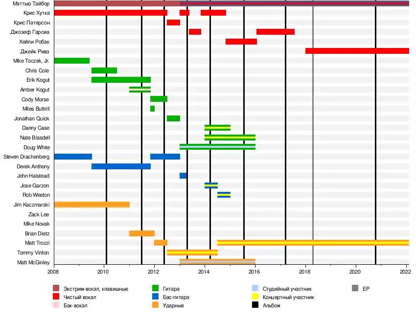 - Chris "The Bear" Hutka - чистый вокал (2008–2012, 2013, 2014)