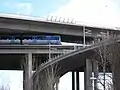 Мост линии Tvärbanan через метро под Автомобильной развязкой в районе станции метро Гуллмарсплан.