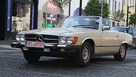 На обложке Ultraviolence исполнительница изображена выходящей из машины со стороны водительского места. Она держится руками за верх двери автомобиля (принадлежащий Лане Mercedes-Benz 380SL[26] 1981 года[27]), смотрит прямо в камеру и «чем-то озадачена»[28]. На ней — белая футболка, через которую просвечивает того же цвета бюстгальтер[29]. В самом низу изображения — название альбома, напечатанное шрифтом с обложки Born to Die[28]. В делюкс-издании iTunes стиль оформления заголовка сохраняется, уменьшен лишь размер текста[30]. В зависимости от издания в верхнем левом углу присутствует знак родительского контроля[5], предупреждающий о ненормативной лексике в песнях[29].