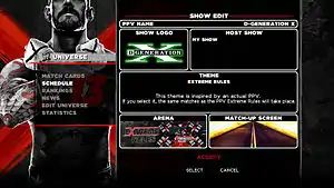 Create-a-Show (Создай-Шоу) — новая возможность в WWE Universe. Вы вольны не только изменять уже существующие шоу, но и добавлять свои собственные в свободные дни, с понедельника по субботу. Изменениям поддаются название, логотип, ростер, титулы для бренда, арена, основная графическая тема и включение/выключение драфта на шоу. Шоу может быть как основным (подходит для новых брендов), так и средней важности (таким шоу является Superstars).
