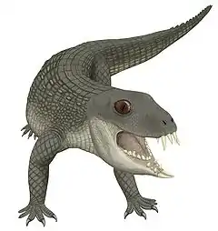 - Pakasuchus kapilimai — другой представитель верхнемеловых нотозухий с глубокой дифференциацией зубной системы, но с иной пищевой специализацией.