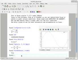 Yacas — программа для символьного вычисления математическими выражениями[5]. В ней используется собственный язык программирования, предназначенный как для символьных, так и для числовых вычислений произвольной точности. Его разработка началась в начале 1999 года.