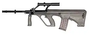 Первые опыты по применению этой схемы относятся к предвоенному и военному периоду, в особенности в Чехословакии — PzB M.SS.41, но широкую известность и распространение она получила с введением австрийской винтовки AUG в 1977 году.