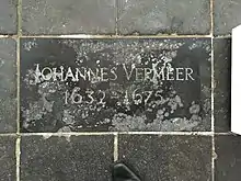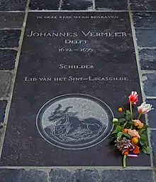 С годами информация о точном месте погребения художника в церкви была утрачена. В 1975 году по случаю 300-й годовщины со дня его смерти местная власть профинансировала установление первой мемориальной плиты на месте бывшего расположения фамильного склепа Вермееров. 26 января 2007 года возле западного выхода церкви была торжественно открыта дополнительная, более статусная плита, на которой указано, что художник был похоронен именно в этой церкви. Между тем существует версия, что во избежание проседания церковного пола остатки погребений под всеми плитами, которые находились в церкви, в свое время были перемещены за пределы здания.