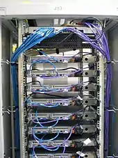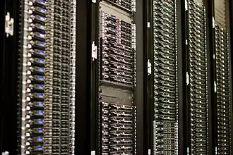 Википедия в настоящее время работает на выделенных кластерах серверов Linux (в основном Ubuntu[80][81]), с несколькими машинами OpenSolaris для ZFS. Вики-проекты Фонда Викимедиа, самым крупным из которых является Википедия, по состоянию на март 2013 года поддерживались работой нескольких кластеров, состоящих из 974 серверов[82].