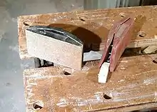 - Для удобства работы с наждачной бумагой её оборачивают вокруг бруска (из любого материала — древесина, пластик, пенопласт) с прикреплённым (прибитым, приклеенным) к нему куском войлока или пористой резины.