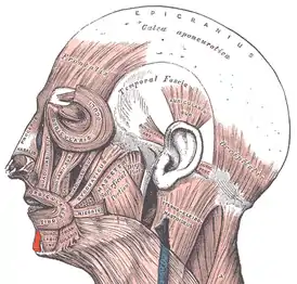 ![]() Подбородочная мышца выделена красным | |