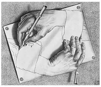 «Рисующие руки» — литография голландского художника Эшера. Впервые была напечатана в январе 1948 года. На листе бумаги изображены две руки, которые ниже запястий лежат в плоскости рисунка, лишь обозначены тонкими линиями контура. Выше запястий руки материализуются и вовлекаются в процесс рисования друг друга.