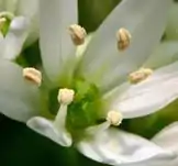 Зонтик пучковатый или полушаровидный, немногоцветковый, густой. Листочки околоцветника белые, линейно-ланцетные, тупые или островатые, длиной 9—12 мм, с малозаметной жилкой.