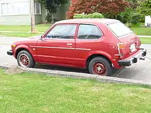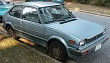 Honda Civic первого поколения появилась в 1972 г. Маленькая, непритязательная переднеприводная японская машинка ничем особенным не выделялась, но именно Civic стал первым массовым японским автомобилем, о котором в Европе заговорили как о серьёзном конкуренте компактным машинам европейского производства. Первое поколение оснащалось 1,2-литровым 4-цилиндровым мотором мощностью 50 л. с., при этом, автомобиль весил всего 650 килограммов. На выбор предлагались два вида трансмиссии: 4-ступенчатая механика и автоматическая Hondamatic. Что касается подвески, то она была аналогична американским малолитражкам того времени — Ford Pinto и Chevrolet Vega. А базовая стоимость автомобиля составляла всего $2,200. После выхода двухдверной и трёхдверной версии компания принялась за модернизацию модельной линейки, и уже через год, в 1973 году, на рынок вышла модель Civic с 1,5-литровым 53-сильным двигателем CVCC (Controlled Vortex Combustion Chamber) и вариативной автоматической трансмиссией/5-ступенчатой механикой. Компанию ему составили спортивная версия Civic RS с двухкамерным двигателем и практичный универсал. К 1974 году компания обновила двигатель, прибавив к прошлому ещё 2 лошади, и сделала машину легче за счёт сокращения веса бамперов. В 1978 году версию CVCC обновили (его мощность возросла до 60 л. с.), подготовив концепцию модели к затянувшемуся перерождению. Автомобили двух последующих поколений укрепили репутацию Civic как очень надёжных и неприхотливых машин. В 1975 г., когда в США были приняты более строгие требования к токсичности выхлопных газов, выяснилось, что Honda Civic с мотором CVCC полностью соответствует этим требованиям, причём, в отличие от других машин с бензиновыми моторами, Honda обходилась без каталитического нейтрализатора.